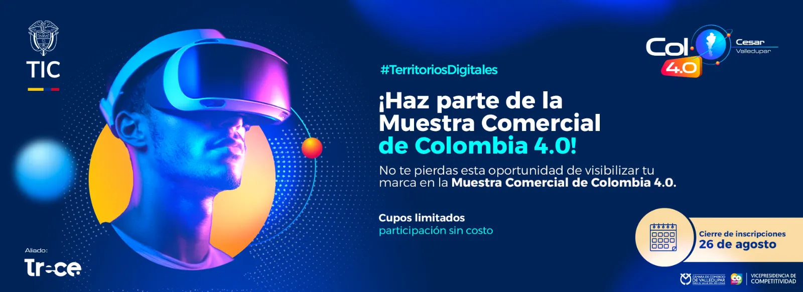 Se busca que las empresas puedan expandir su alcance hacia nuevos sectores económicos, forjar alianzas estratégicas, captar la atención de un público diverso, intercambiar ideas innovadoras con otras compañías y realizar actividades de networking. El Ministerio TIC brindará a las empresas seleccionadas la oportunidad de hacer parte de la muestra comercial de Colombia 4.0, que se realizará los días 15 y 16 de septiembre de 2025 en locaciones por definir con la Subdirección de Industria TI del Ministerio de las TIC, y los Aliados que participarán en el evento en la ciudad de Valledupar.